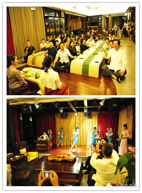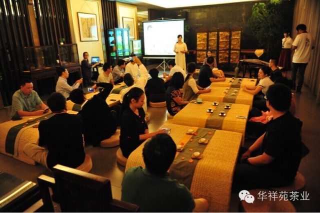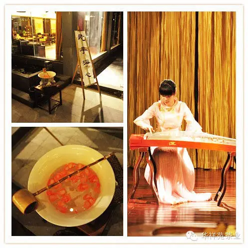 茶会从【洗手静心】开始,华祥苑董事长秘书何丽君简单而温暖的寒暄过后,大家开始聆听天籁般的古筝雅乐,并一同观看了华祥苑五星生态茶庄园“生态茶山风光片”。现场,片子纯净的山泉、清新自然的环境,天然而唯美的画面让大家沉浸其中,真正感知了正韵源头的魅力。