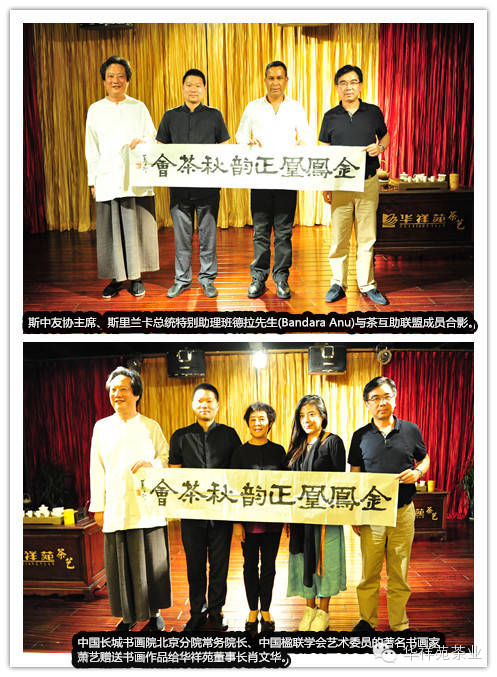 茶会在轻松愉悦的氛围中举行,最后,中国长城书画院北京分院常务院长、中国楹联学会艺术委员的著名书画家萧艺为华祥苑现场书写一副【金凤凰正韵秋茶会】的书法作品,并赠送给华祥苑董事长肖文华。茶互助联盟的成员们表示,华祥苑【金凤凰正韵秋茶会】给人们带来的不仅仅是好茶,更是对传统工艺的坚持,和对东方茶文化向青年人传播的积极意义。并希望今后加强联盟合作,为茶产业互助成长,贡献积极的力量!